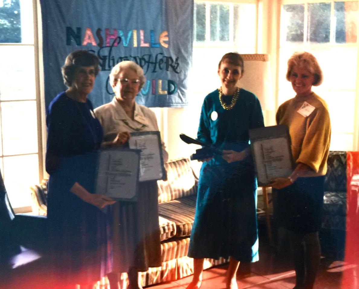 Saturday, November 9, 1996, marked the fifteenth anniversary of the Guild. Following the meeting at Nashville State Tech, the group celebrated at Betty Gilpin’s home with a covered dish luncheon and a time to share fond memories of the origins of the Guild, the workshops, the exhibits, and other activities.
