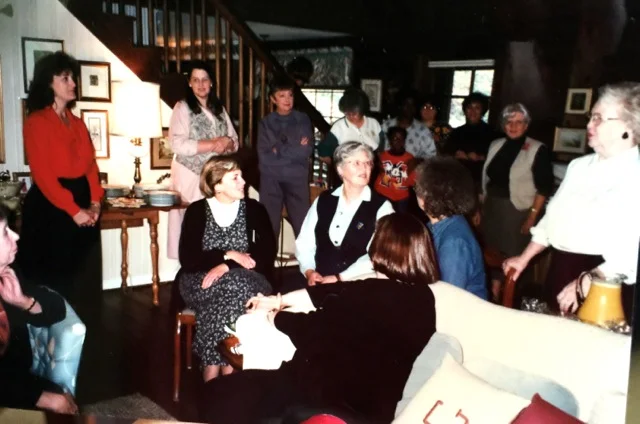 The Guild began at the encouragement of instructor Sarah Schuyler with eight members. These eight ladies met monthly on Saturdays for lunch around Betty Gilpin’s kitchen table. There they shared calligraphy projects and became close friends.